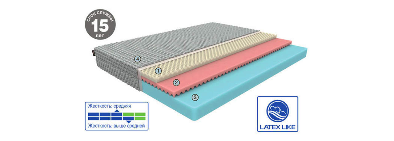 Матрас дарит быстрое снятие напряжения и расслабление мышц за счет уникальной мягкой, но упругой пены Latex Like.